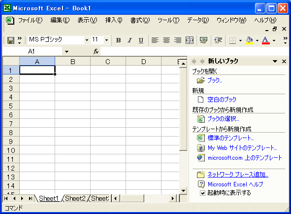 「スタート」─「プログラム」─「Microsoft Excel」で起動します。