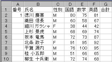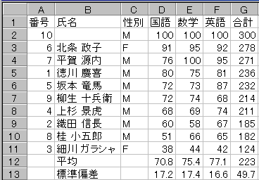 ソート 次に、成績順に行を並び替えてみます
